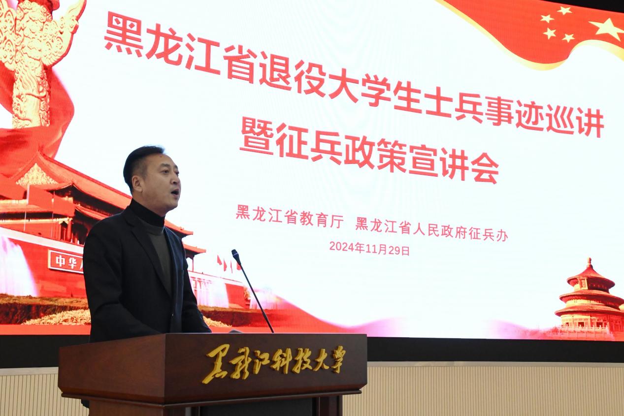 宣讲会邀请省退役大学生士兵宣讲团黑龙江大学马一平、东北农业大学王科达作为宣讲嘉宾,松北区人武部军事科参谋张阳,校武装部全体成员,各学院征兵辅导员和有志参军的2024届毕业生代表参加宣讲会。宣讲会由学生处副处长张瑞主持。