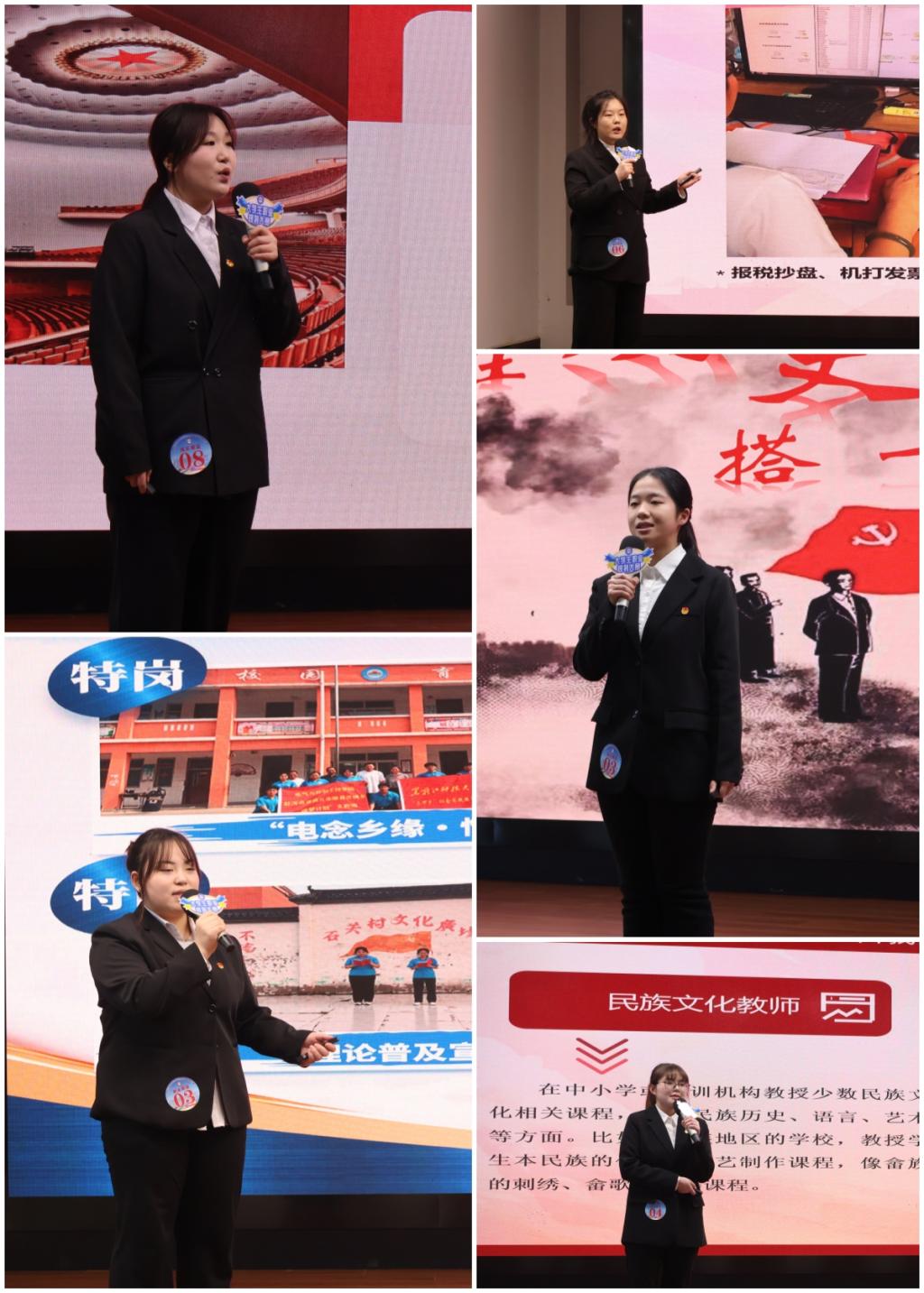 本次比赛邀请了来自高校和企业的5位专家进行评审和提问点评指导。省大学生就业创业指导中心就业创业服务部副部长富欢莅临决赛现场观摩。各学院就业辅导员、指导教师及学生代表共200余人观看了决赛。决赛上半段为成长赛道,参与该赛道的9名选手结合各自的生涯发展报告,分别进行了6分钟的主题陈述和展示。在下半段就业赛道决赛中,参与该赛道的7名选手每人进行了6分钟的个人求职意向和职业准备情况陈述,展示其通用素质与岗位胜任力。