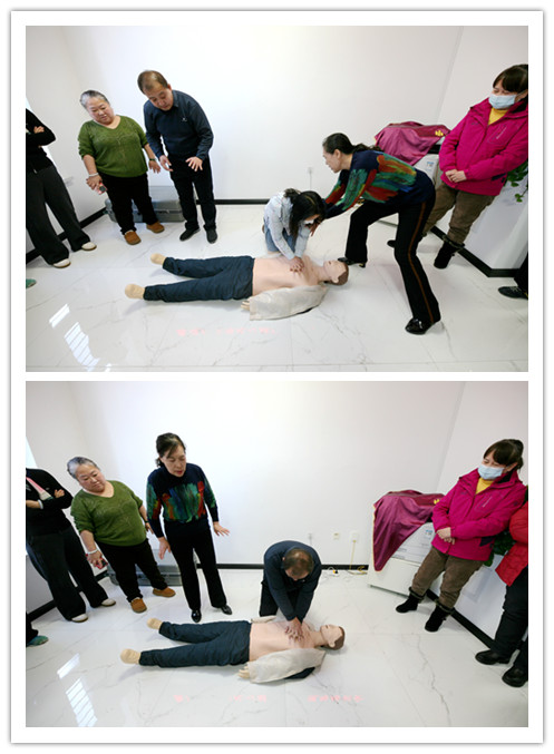 在模拟演练环节,工作人员和老同志们沉着冷静、有条不紊、操作准确,基本掌握了观察环境、判断意识、检查呼吸、胸外按压、检查及开放气道、人工呼吸、自动体外心脏除颤器(AED)使用步骤及实操要领。进而通过实际操作巩固所学急救知识,并提高应对紧急救援情况的能力。
