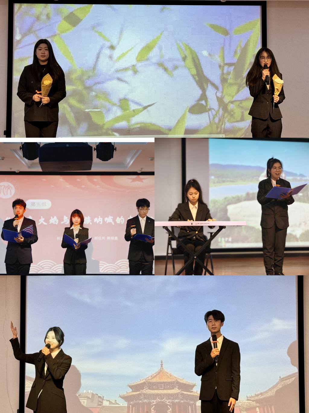 此次朗诵比赛以“铭记一二·九 诵读中国梦”为主题,参赛选手们带着满腔热忱、凝聚磅礴力量,将经典篇章和爱国情怀传递给每一位听众,于字里行间领略岁月悠长,探寻先辈的智慧光芒,感受他们为理想拼搏的激昂。《我用残损的手掌》用深情的声音传递出诗人对祖国深深的眷恋与不屈的信念;《声震人间爱国情》以饱满激情重现先辈们的爱国怒吼,震撼人心;《大写的中国》描绘出祖国的壮丽画卷,彰显热爱与自豪;《祖国赞》激昂赞美祖国的山河、历史与成就;《青春火焰与民族呐喊的史诗》展现了青春激情与民族奋斗历程;《青春中国》用清新声音展现出青春中国的蓬勃朝气与美好希望;《我的祖国》以温婉深情的语调倾诉对祖国母亲的无尽热爱;《红色追思》用深情引领大家回顾红色岁月的光辉历程,矢志传承不朽的红色基因。