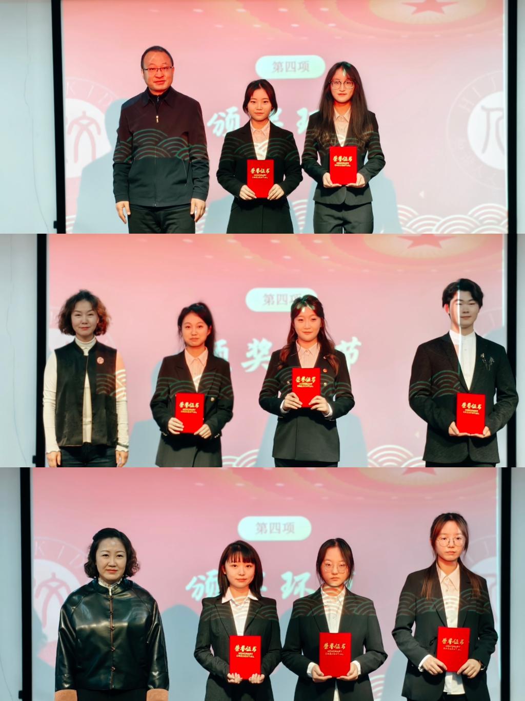 大会在庄严的国歌声中拉开帷幕。团委书记韩雪宣读了《关于表彰2024年度“优秀班集体”“优秀学生会工作人员”“学风建设先进个人”“校园文化建设先进个人”的决定》,与会领导和老师分别为受表彰的班集体和优秀个人颁发荣誉证书,先进个人代表汉语言21-2班王艺儒、社会学23-2班卢逸飞作典型经验交流。