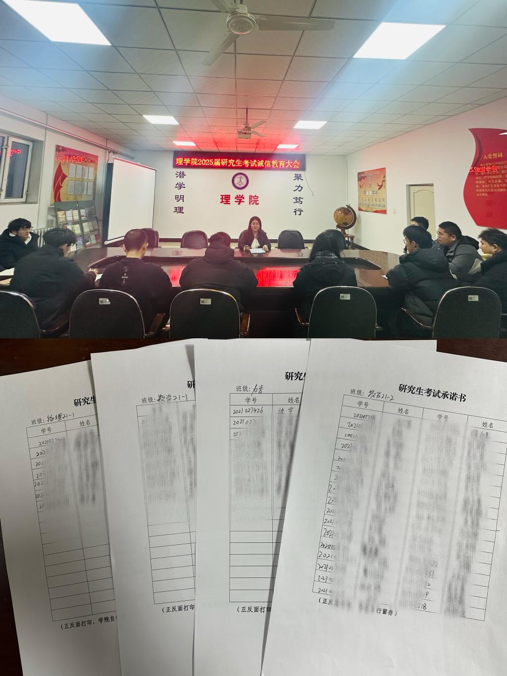 聚焦心态调试,树好考研风向标。毕业年级辅导员李威燃对2025届考研学生开展了考研诚信教育,提示考试注意事项,组织全体考生签署《研究生考试承诺书》,营造积极向上、诚实守信的考试氛围。希望同学们劳逸结合,及时调整心态和状态,以饱满的热情、坚定的信心,持续不断地努力奋战至备考的最后一刻。
