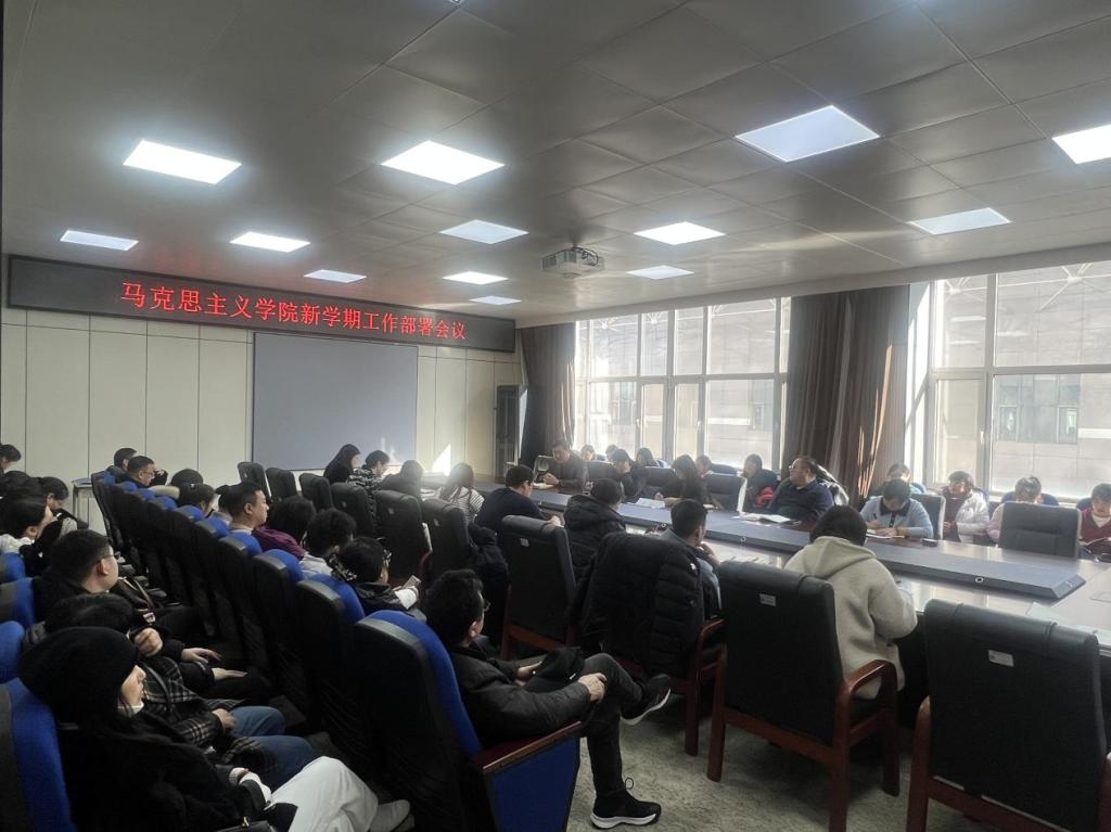 为全面做好学院2025年工作,确保新学期各项工作扎实有序启动,2月28日下午,马克思主义学院在科技大厦二楼会议室召开教职工大会暨新学期工作部署会议。学院领导班子成员和全体教职工参加会议,会议由学院党委副书记李宁主持。
