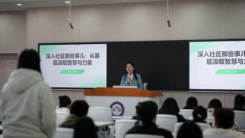 4月14日下午,人文学院社会工作系大二年级全体学生迎来一位特殊的老师——松北区松祥街道世茂滨江社区党委书记兼主任王冬娟,作为学院推出的“社区书记进课堂”系列活动的首场主讲人,她以一线治理经验为“教材”,为学生们带来一堂别开生面的“社区治理实务课”。讲座由人文学院副院长李璐主持,社会工作系中青年骨干教师全程参加。