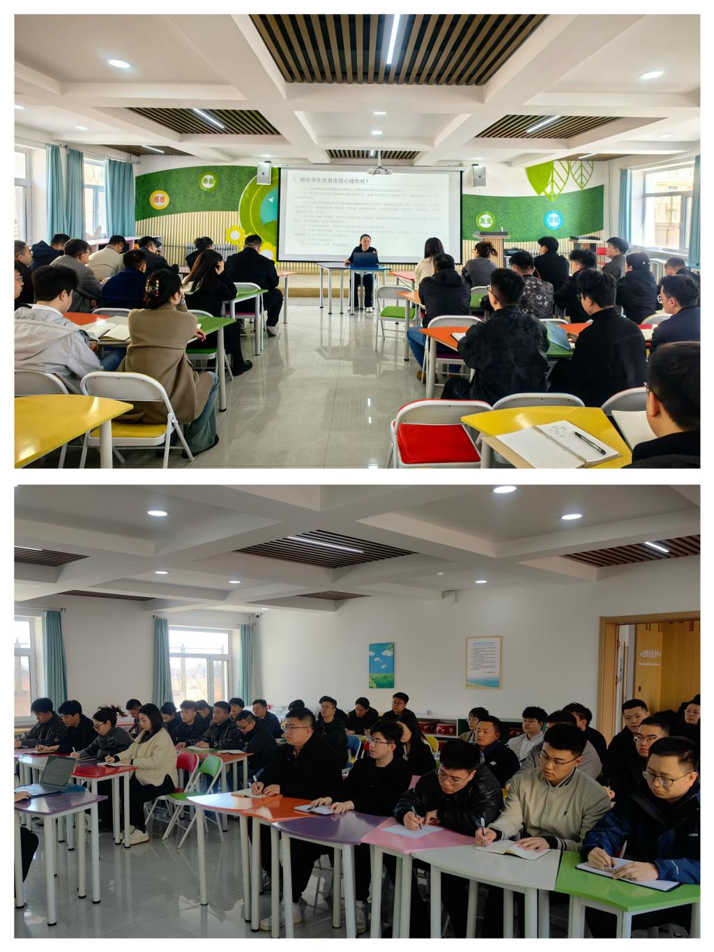 培训采用“双轨并进”混合式研训架构,线上依托心理健康教育大数据平台,完成抑郁症的识别与治疗、自杀高危人群识别技术、心理危机干预中法律处理流程、家校沟通技巧以及心理约谈技术等知识图谱构建;线下实操环节,心理健康教育中心梁圆圆老师以《危机与守护:大学生心理危机实战技能培训》为主题,通过典型案例还原、危机情境推演、多角色沉浸式体验等方式,精准提升危机预警敏锐度、干预技术应用效度及家校协同响应速度。