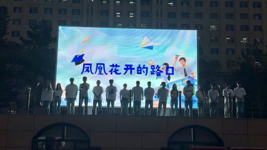 歌曲《裹着心的光》和诗朗诵《中国梦·米兰官网平台梦》展现了毕业生们对未来充满的坚定信念和对母校的深情告白。合唱《灯火里的中国》传递了米兰官网平台青年心怀家国、勇担使命的壮志豪情。最后,全场师生合唱《凤凰花开的路口》,歌声中饱含着毕业生对母校的祝福与不舍。