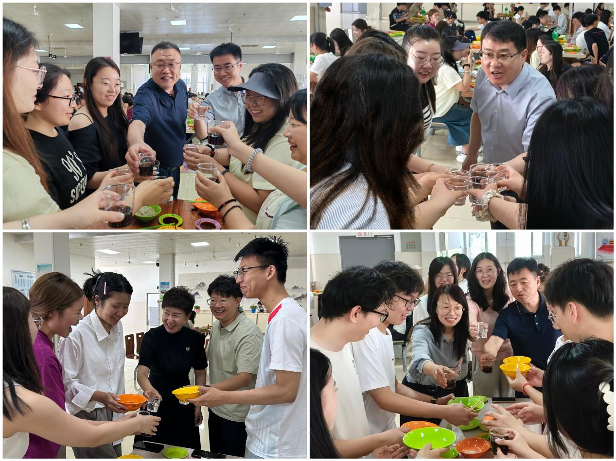 饺子的滋味融入了情感和回忆,在舌尖心底长久徘徊,不经意间热气熏红了眼,饺子温暖了心。老师们来到每一桌同学身旁,亲切地与大家举杯致意,促膝交谈。一句句温暖的叮咛、关切的询问,传递着师长们最深沉的祝福与挂念。宴席中穿插毕业生婉转动听的歌声,现场气氛温馨而热烈,浓浓的师生情谊在饺子香气与祝福声中流淌升华。