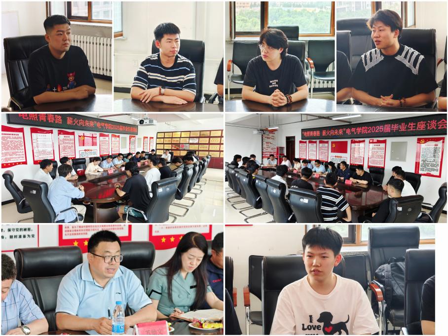 深情座谈会,共话成长路。6月18日,电气学院在朝阳楼607举办2025届毕业生座谈会。学院领导班子、辅导员与20余名毕业生代表,以“话成长、诉感恩、启新程”为主题展开座谈。毕业生代表从入学青涩、钻研学习、专注实验、志愿服务的成长点滴进行分享。毕业生代表就课程设置、实践教学、就业指导等方面积极建言,与会教师认真聆听吸纳建议并深情寄语。此次活动学院将持续关注毕业生校友发展,完善人才培养机制,输送高素质电气人才。