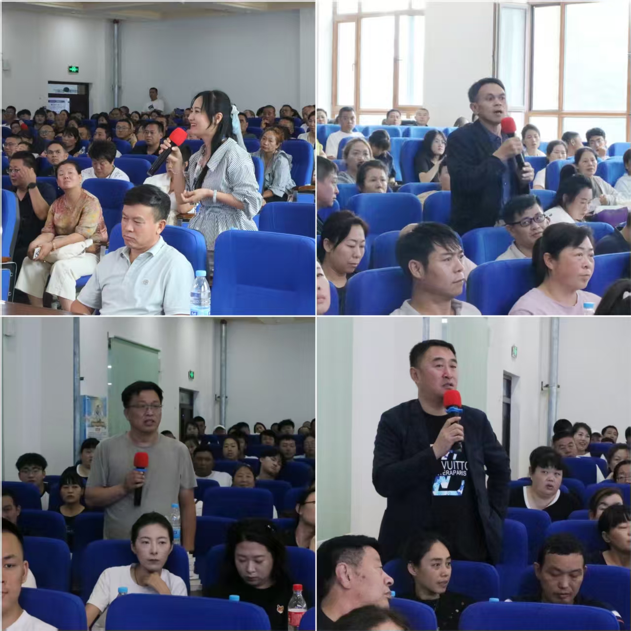 会上,学院党委书记李鹏银代表学院向新生家长致以热烈祝贺与诚挚欢迎,介绍学校与学院的发展历程、办学特色及学生工作整体规划,让家长直观感受学院育人底蕴。党委副书记侯树成结合“88336”学生工作体系,从家校沟通、心理健康等维度帮助家长厘清“重分数轻成长、重结果轻过程”的教育认知误区;副院长刘丹丹聚焦家长关切的考研规划、教学质量与人才培养方向给出专业解读。副院长李忠勤围绕学院概况、学科优势、师资力量、专业布局、教学模式等方面向新生家长做了全面而深入的介绍;在交流提问环节,参会老师针对家长普遍关心的日常生活细节、就业发展现状、职业规划指导等问题逐一细致回应,现场互动热烈,氛围融洽,真正做到“有问必答、有惑必解”。