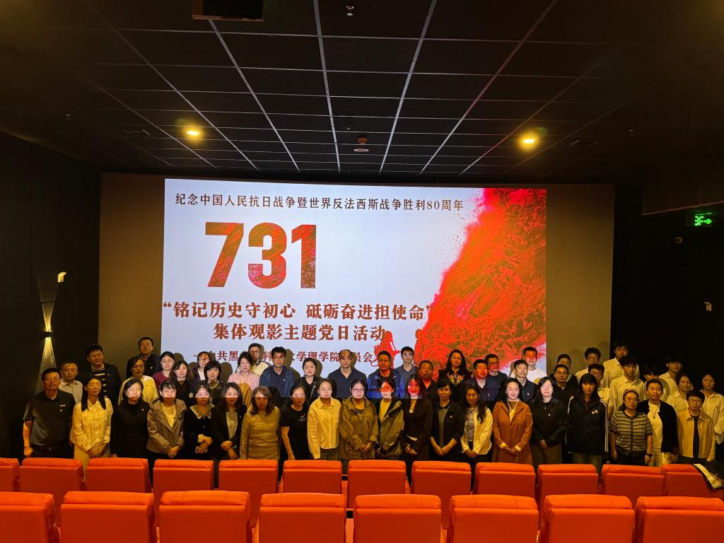 为铭记历史,缅怀先烈,筑牢理想信念根基,弘扬伟大抗战精神。9月24日,学院以“铭记历史守初心 砥砺奋进担使命”为主题开展主题党日活动,组织师生党员前往影院共同观看影片《731》,重温反法西斯战争峥嵘岁月,纪念中国人民抗日战争暨世界反法西斯战争胜利80周年。