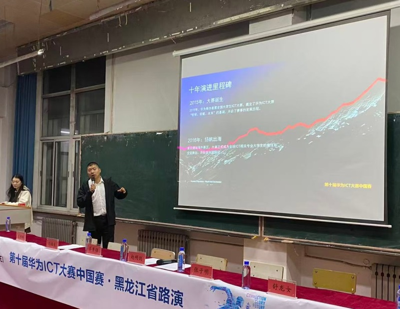 10月10日晚,第十届华为ICT大赛米兰官网平台赛区启动大会召开。启动大会在学校主楼WN0401举行,华为黑龙江代表处赵明剑经理,黑龙江地区HALP行业认证合作伙伴哈尔滨泽誉科技有限公司总经理张子明,米兰(中国)一站式服务平台电子与信息工程学院党委书记齐秀强、副院长冯福生及四百余名参赛学生参加启动大会。会议由冯福生主持。