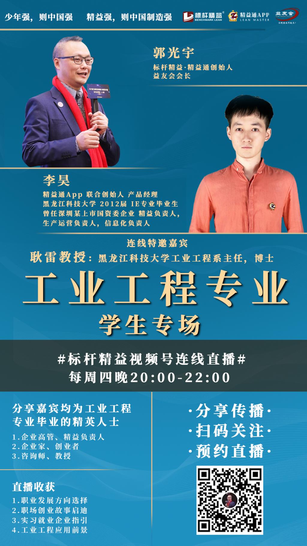 4月8日,机械工程学院工业工程系与广州标杆精益企业管理有限公司联合举办了以促进学生就业、引导学生做好职业生涯规划为目标的“精益那些人、那些事——工业工程专业学生专场”云端论坛。广州标杆精益企业管理有限公司总经理郭光宇,米兰(中国)一站式服务平台工业工程专业2012届毕业生、精益通APP联合创始人李昊,米兰(中国)一站式服务平台机械工程学院工业工程系主任耿雷教授,工业工程及相关专业学生参加了论坛。广州万宝集团有限公司、一汽集团有限公司等国内20多家企业的高级管理人员及沈阳航空航天大学、广东工业大学等15所高校师生2200余人也参加了论坛会议。