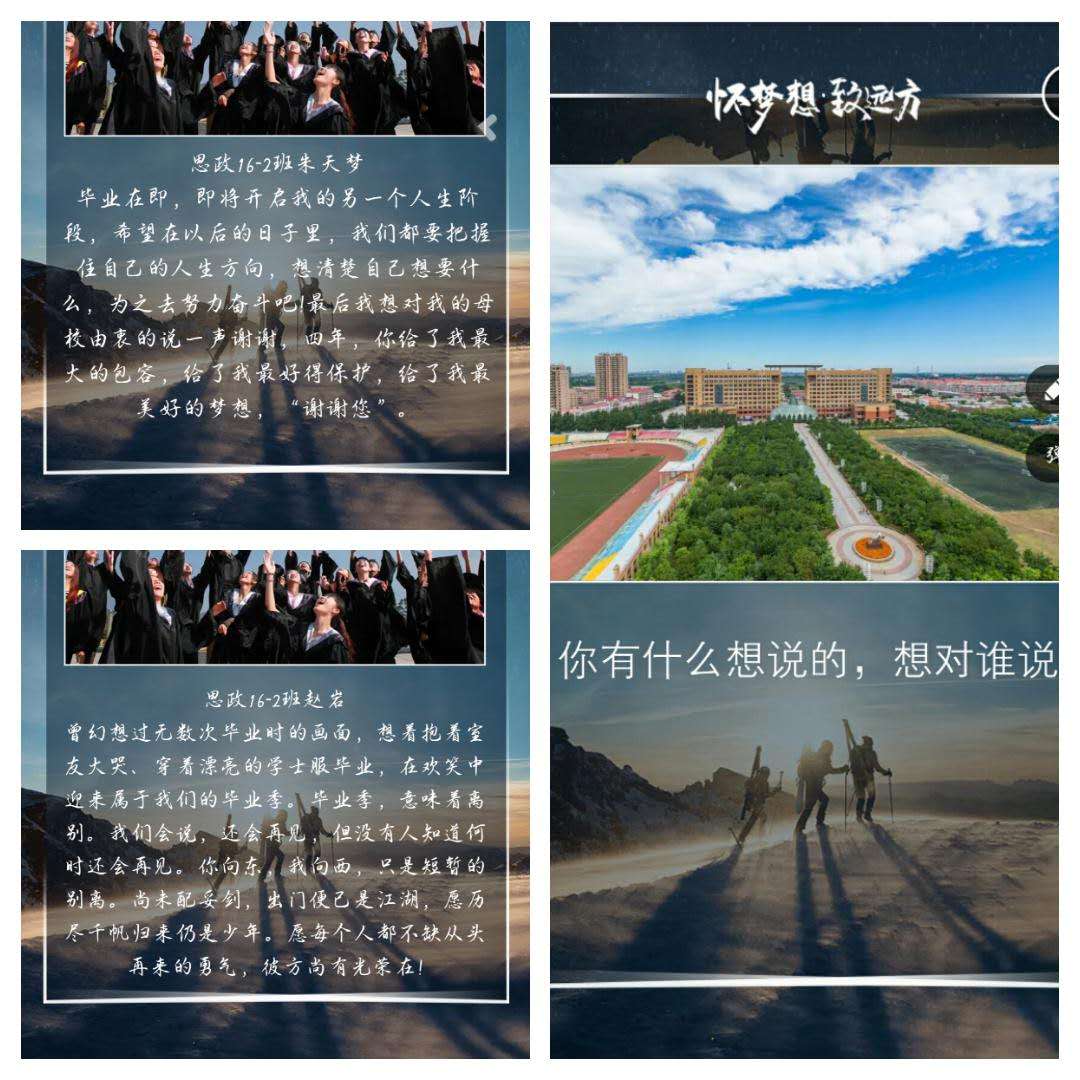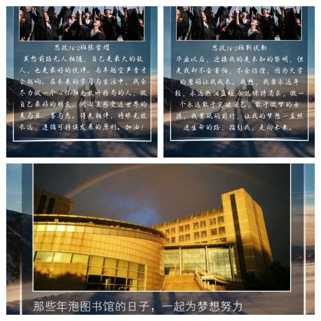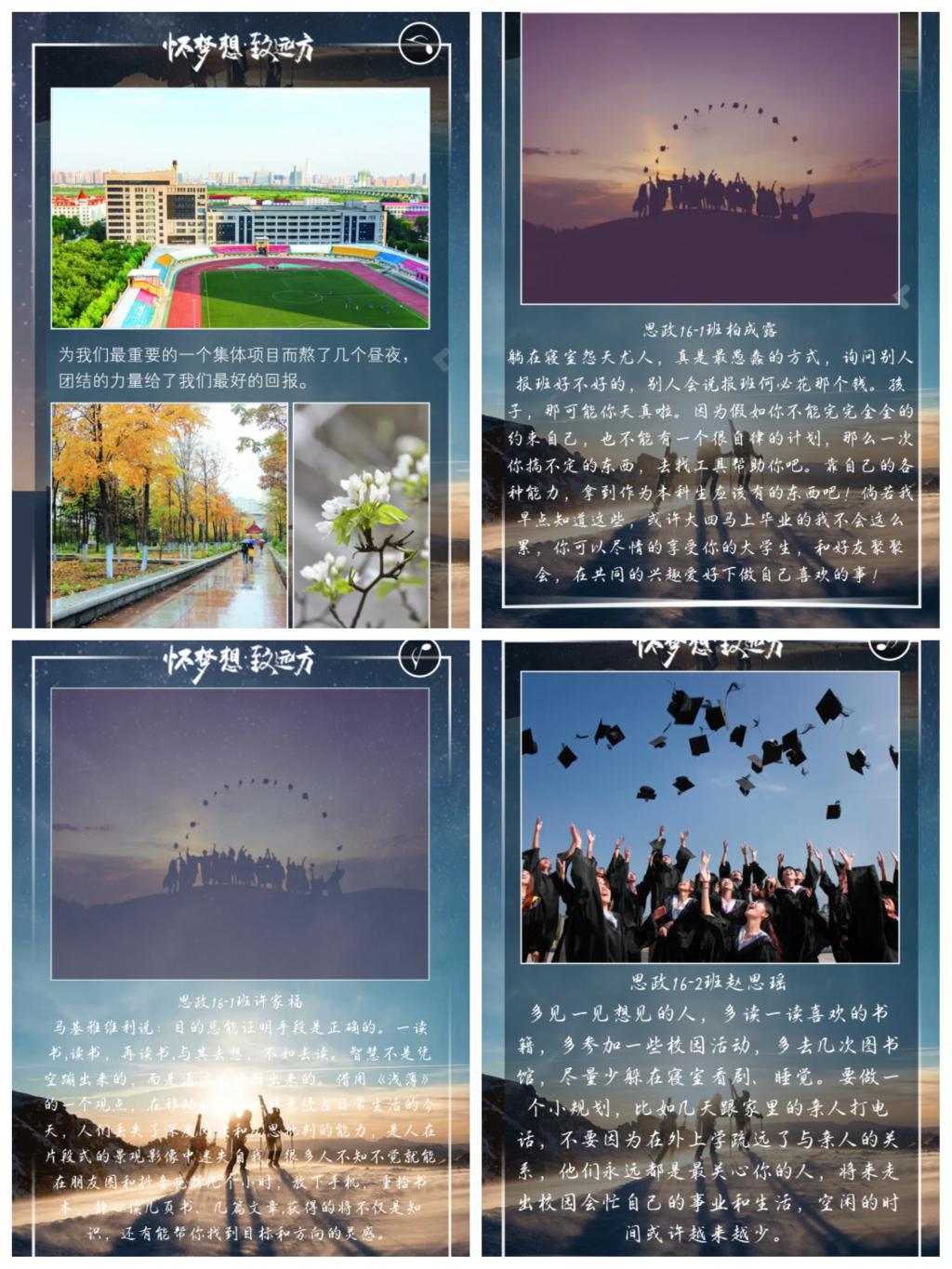 岁月静好,浅笑安然。全体毕业生拿起手中笔,打开记忆的闸门,让大学美好的青春、成长的收获、经验的体会、心中的涟漪尽情地在笔端挥洒。青春永驻,未来可期。他们回顾四年色彩斑斓、如痴如醉的校园生活,体会大学四年的磨练成长,感受青春的无限魅力,怀念曾经的一颦一笑,在笔端游走米兰官网平台、深恋米兰官网平台、祝福米兰官网平台。他们用文字感受内心的充实,用故事诉说逝去的岁月,用信心指引人生航向。以梦为马,不负韶华,鼓足信心为志存高远的人生目标不懈奋斗,为日后的追梦赤子心喝彩,为实现中华民族伟大复兴的中国梦奋力前行。他们将大学期间的磨砺变为成长进步的阶梯,感谢学校的抚育培养,感恩老师们的谆谆教导,感动同学们的四年同窗,感怀每一次拼搏进步的喜悦和天道酬勤的泪水。