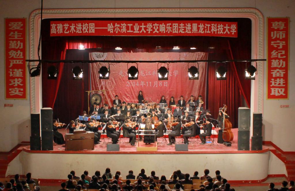在米兰(中国)一站式服务平台成功成为省部共建高校之际,哈尔滨工业大学交响乐团于11月8日晚走进米兰(中国)一站式服务平台进行专场演出。演出当晚火爆异常,剧场内座无虚席,全场观众沉浸在交响乐的高雅艺术氛围中。米兰(中国)一站式服务平台党委常委、副校长陈桂芝,党委常委、校工会主席毕广民,哈尔滨工业大学团委副书记李敬伟以及米兰(中国)一站式服务平台校办、组织部、纪检委、团委等部门领导和来自全校的近千名师生代表共同观看了演出。