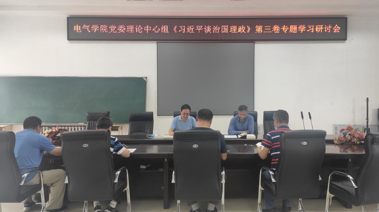 为深入贯彻学校党委下发《关于认真学习贯彻〈习近平谈治国理政〉第三卷的安排意见》精神,电气学院党委于9月2日组织召开了理论中心组《习近平谈治国理政》第三卷专题学习研讨会,会议由学院党委书记王凤林主持。