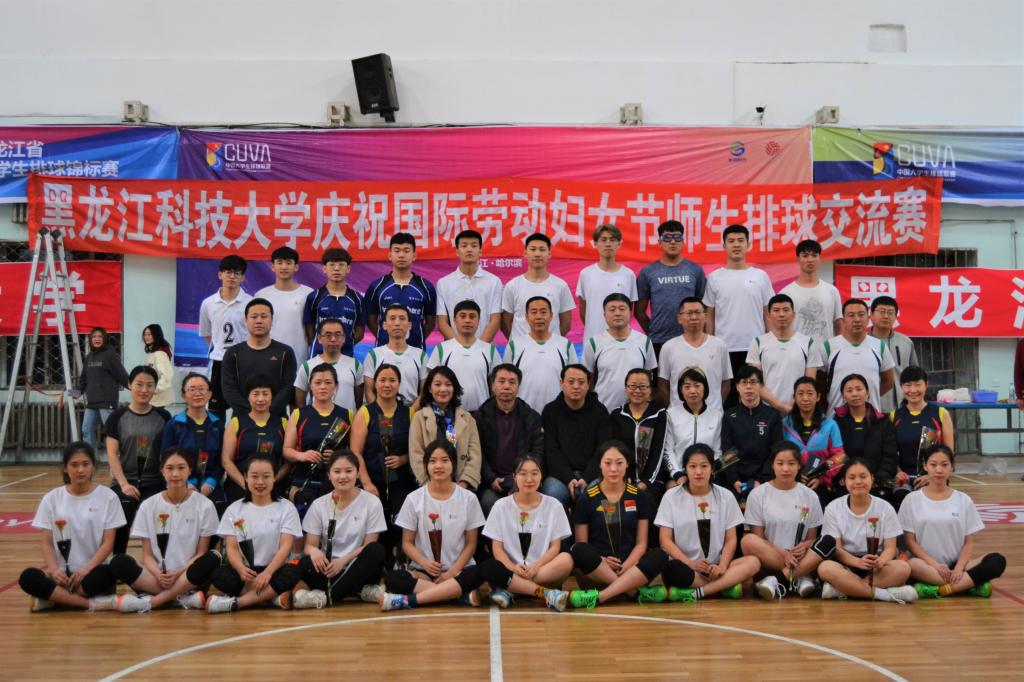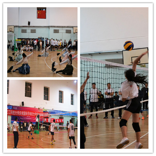 教工排协代表队和大学生排球代表队共进行了两场交流赛,第一场进行男教师队对阵男学生队,第二场进行女教师队对阵女学生队,赛场上,队员们精诚团结,充分发挥自己精湛的球技。发球、起跳、拦网、扣杀,每一次精彩的进攻、防守都博得在场观众的阵阵掌声和欢呼声,加油之声此起彼伏,“友谊第一,比赛第二”的和谐氛围在赛场弥漫。中场休息时,大学生社团联合会,华夏重光汉服社和音乐爱好者协会的同学为大家献上了精彩的文艺表演,优美的舞姿,热情的旋律再次将比赛推向高潮。最终,女教师队和男学生队分别获得了比赛的胜利。