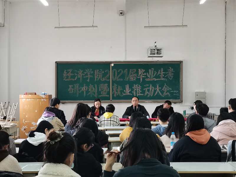 为进一步加强学风建设,坚定2021届考研学生备考冲刺阶段的信心和决心,引导考研学生在备考同时,积极主动参加企业招聘,做到“一颗红心,两手准备”。10月22日,在主楼E0218室召开了2021届毕业生考研冲刺暨就业推进大会,学院党委副书记贺龙军、学工办主任张瑞、辅导员王尚和全体备考学生参加了本次会议。