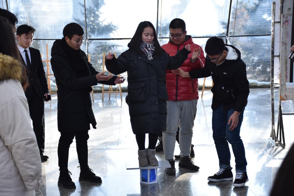 一等奖“呦呦鹿鸣”团队的获奖作品,以六边形蜂窝形状为基础从而达到了稳固的结构,在外形上采用纸雕艺术,利用对纸张的雕割、透光而形成了具有立体感和平面感的艺术效果,使模型得到全场观众和评委老师的一致好评,他们的作品获得了最佳创意奖。(高汝南/文)