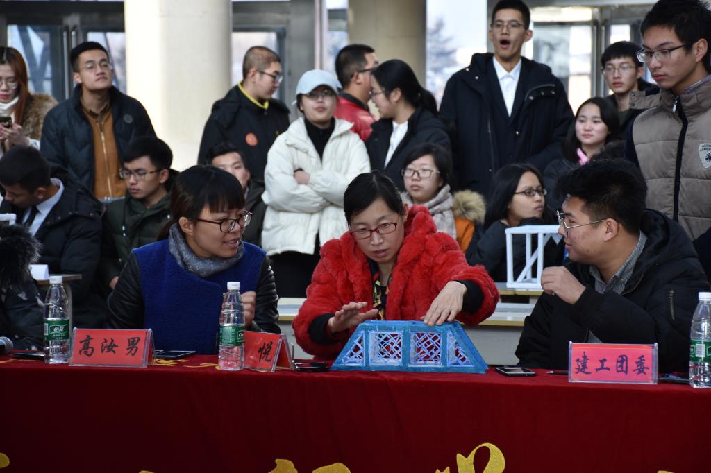 决赛评审人员由教师和学生共同组成。建工学院土木工程教研室教师、校青年才俊杨悦老师,学院分团委书记高汝男老师作为教师评审嘉宾出席活动,校大学生科技协会主席易蕾以及学院分团委14级团干部杨宇辉、张传伟、阳玉等作为学生评审嘉宾出席了活动。