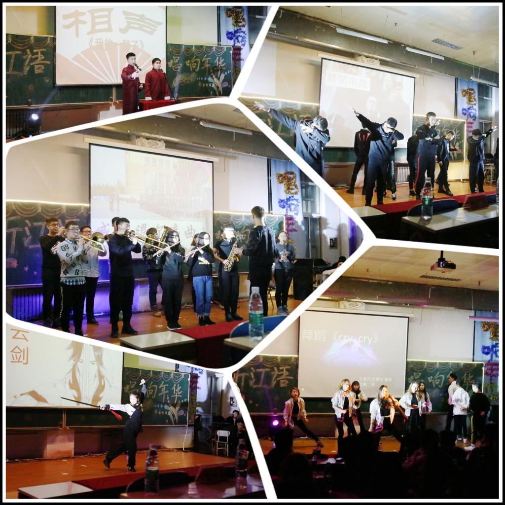 晚会在军乐团雄壮的演奏中拉开帷幕。舞蹈《cry cry》激情四射,引爆全场,展示了学生的青春和朝气;哑剧《胶》、小品《一代宗师》、相声《我这一辈子》用滑稽搞笑的动作、幽默风趣的语言引得观众们掌声连连,笑声不断;武术表演《舞剑》让观众领略了中华民族独有的艺术魅力;诗朗诵《太阳石之子的青春》表现出了矿业学子戮力同心,不忘初心,砥砺前行的豪情壮志;悠悠球表演美轮美奂,让人应接不暇。整场晚会历时2个小时,共12个节目,期间精彩不断,高潮迭起,赢得台下阵阵掌声。晚会最终在学院2017级辅导员徐龙老师的歌声中落下帷幕。