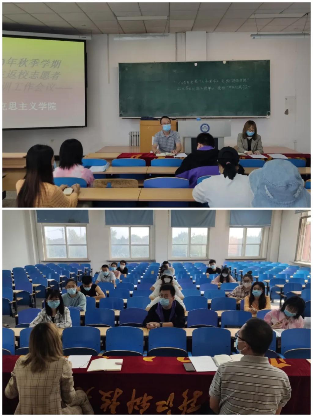 为贯彻落实学校关于2020年秋季学期学生返校工作的各项要求,科学严谨、扎实细致做好学院学生返校前、返校中和返校后的教育、管理、服务工作,顺利迎接学生返校复课。马克思主义学院分别于9月3日和9月6日组织召开线上在校生返校工作部署会议和返校学生志愿者培训工作会议。学工办主任孙晓辉、全体在校生和返校学生志愿者参加会议,会议由辅导员高阳主持。
