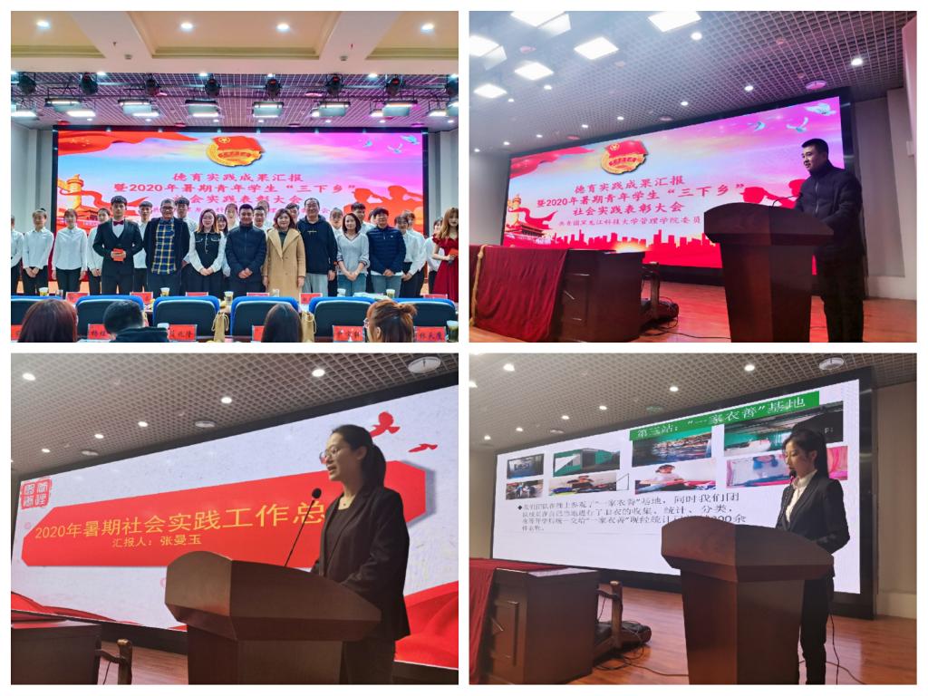 10月29日,管理学院在新综合楼0131报告厅召开德育实践成果汇报暨2020年暑期青年学生“三下乡”社会实践表彰大会。校团委副书记马紫微、管理学院党委副书记张晓光、管理学院学工办全体辅导员、各兄弟学院团委副书记以及学院主要团学干部参加了本次大会。