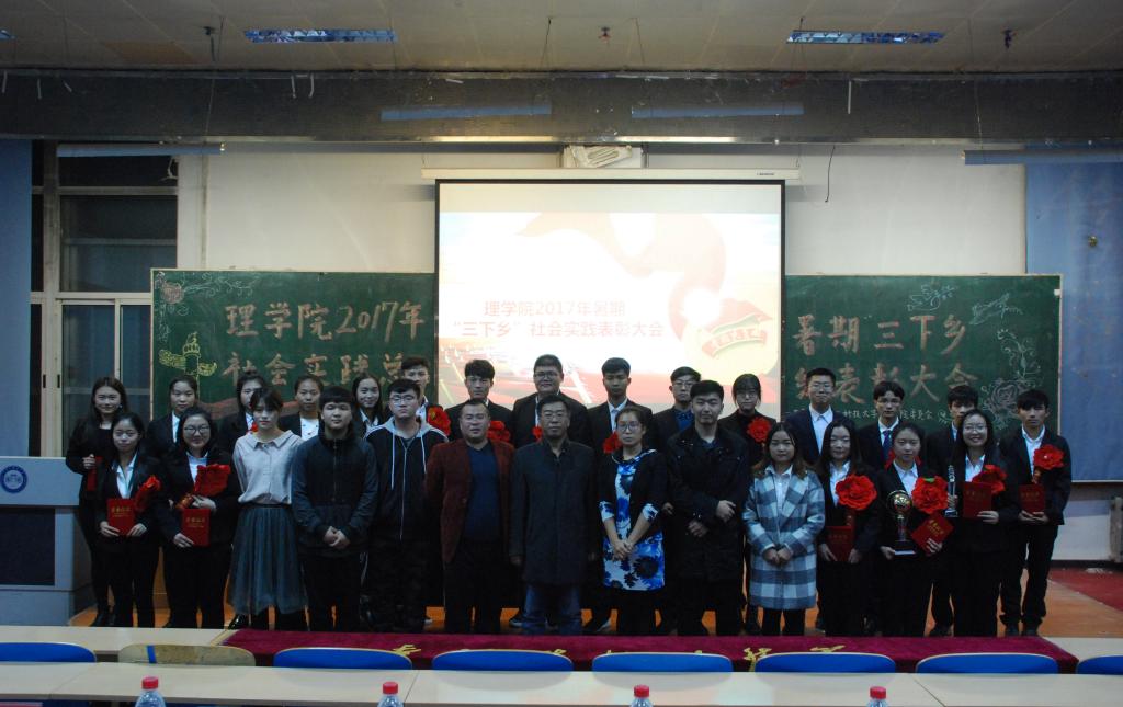 表彰大会上对在2017年暑期“三下乡”社会实践中表现优异的“优秀团队”、“优秀集体”和“优秀个人”进行了表彰。省级重点团队理学院“足记”社会实践服务团代表力学16-2班高婧媛同学、优秀集体代表力学16-2班侯文佳同学、优秀个人代表统计16-1班王洁同学及国家奖学金获得者物理15-1班吕杰同学以视频、ppt等图文并茂的形式进行了典型经验交流。