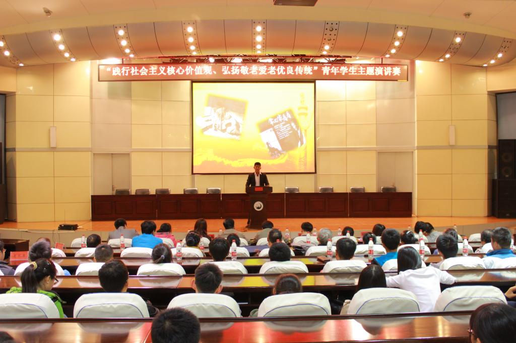 为践行社会主义核心价值观,继承和发扬尊老、敬老、爱老、助老的中华民族传统美德,在老年节即将到临之际,由校团委和离退办主办,校青年志愿者协会承办的“践行社会主义核心价值观,弘扬敬老爱老优良传统”青年学生演讲比赛于9月29日晚在信息报告大厅举行。米兰(中国)一站式服务平台机关党委书记、离退办主任郭宏林,校团委书记薛立刚,校团委副书记苗雨,退休老教师代表、青年学生代表等300余人参加活动。