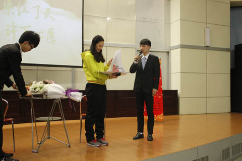 整场活动以访谈的形式进行,张虹讲述了一组组照片背后的故事,为我们讲述了自己从7岁开始滑冰,18年来不畏艰辛、奋力拼搏的故事。和我们分享了为中国夺取了冬奥会历史上的第一枚速度滑冰金牌的激动和骄傲。通过访谈的进行,在场师生真切感受到了一名运动员代表国家取得赛事最高荣誉的那份自豪,和背后所付出的磨难、艰辛与超乎常人的执着。张虹的真诚大气、阳光心态以及勇于拼搏的精神打动了在场每个人,她说“我每天、每个月、每个季度都会给自己设定一个小目标,只有做好每天的事情才会有未来”,“我很幸运在自己最困难的时候没有放弃,而是一直在坚持”,最朴实的话语道出了长期的坚守与执着。她对同学们说一定要珍惜在校的每一天,珍惜这么好的学习环境,现在的每一个积累都会为今后的成功做下铺垫。当谈及训练的枯燥和给身体带来的伤痛时,她说“既然选择了就要有责任感”,“虽然训练很痛苦,但怎样都是一天,为什么不开开心心的过呢,我就是队里的开心果”,“都说痛并快乐着,但我是累并幸福着,有追求、有目标、有梦想,才幸福”。当谈及获得索契奥运会冠军颁奖环节时,她说“看着五星红旗在最高的地方升起,内心充满了神圣感和自豪感”,她在颁奖台上行的军礼令人难以忘怀,张虹说这枚金牌的获得不只属于她一个人,而是属于所有前辈、所有速滑队员和关心速滑事业人们。她很感恩国家、感恩大家,这种家国情怀和感恩态度令在场师生动容。