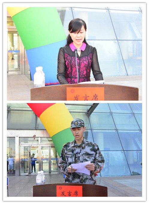 九时整,校党委书记申林宣布开学典礼暨军事训练结训式开始,大学生仪仗队和55支受阅方队进行分列式,依次接受主席台领导的检阅,嘹亮的口号声响彻科技广场上空。