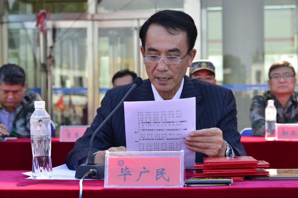 校党委副书记张明华对军训工作进行了全面总结,他代表学校向支持军训工作的领导和同志表示衷心的感谢,向承训部队的全体教官致以崇高的敬意,向所有参训学生致以亲切的问候,向在军训中受表彰的先进典型表示祝贺。他指出,军训增强了学生的组织纪律观念,培养了学生艰苦奋斗的作风,磨砺了学生的意志品质。他强调,军训成绩的取得,得益于上级部门和学校领导的高度重视,得益于全体教官的辛勤努力,得益于全校各部门的密切配合,得益于全体2016级学生的不悔付出。他希望,新生把军人的优良品质和作风带到今后的学习和生活中去,让军训生活成为一生的记忆,牢记“厚德博学,强吾兴邦”的校训,践行“求真求实、创业创新”的校风,争做新时代合格大学生,为建设特色鲜明的应用型科技大学贡献青春和力量。