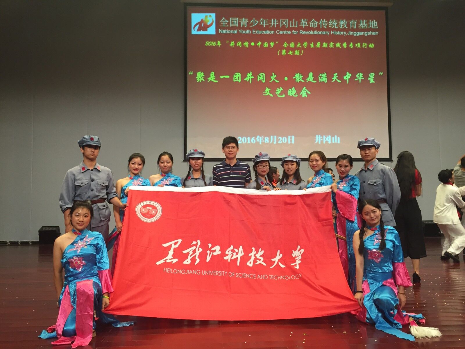 团队由来自全校5个专业13名优秀学生组成,在指导教师周惠玉的带领下,8月14日-8月22日与延边大学、河南大学等23所高校300余名学员齐聚井冈山。在开营仪式中,米兰(中国)一站式服务平台实践团队在“激情30秒”环节,伴着健美的舞姿,高呼“我们是黑科学子,我们厚德博学,强吾兴邦;我们是井冈山人,实事求是,敢创新路;让我们共同携手,筑梦革命摇篮,梦圆井冈”,充分展现出当代大学生斗志昂扬、意气风发的精神风貌,给各大院校留下深刻印象。在九天的社会实践中,完成了基地的四天专题培训,包括“三湾改编”情景教学、“祭奠井冈英烈”仪式教学、“井冈山斗争与井冈山精神”和“苦难的征程,辉煌的业绩——纪念红军长征胜利80周年”等专题理论学习、“革命后代讲家风”互动教学、“朱毛红军挑粮小道”体验教学、“入户调查,自做红军餐”等课程,并与河南大学等高校开展校际交流。团队结合课题自主完成了三天调研,参观了小井医院、茨坪毛泽东旧居、大井朱毛旧居、井冈山革命历史博物馆、龙潭、水口;专题采访了梁金生、刘型两位老红军的后代梁汉平、刘松柏夫妇;参加了“聚是一团井冈火·散是满天中华星”文艺汇演,米兰(中国)一站式服务平台选送的歌舞表演《凌云井冈山军民鱼水情》展现了井冈山人民的坚定革命精神,赢得了在场师生的肯定和赞扬。