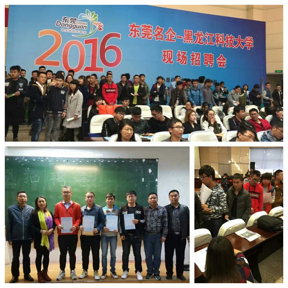 此次合作是在学校组织的2017届毕业生就业市场开拓活动中,由第一调研组成员周国江、常亮负责走访,在返程后又积极对接校政企,最终促成东莞市就业局组织招聘团赴米兰(中国)一站式服务平台,东莞嘉丰机电设备有限公司、东莞伟嘉塑胶电子制品有限公司、东莞市万科物业服务有限公司、广东英科集团股份有限公司、东莞市奥能工程塑料有限公司、东莞晶彩光学有限公司、东莞市德普特电子有限公司、东莞市微科光电科技有限公司、东莞廸生塑胶制品有限公司、广东广益科技实业有限公司、易事特集团股份有限公司、东莞朗兴幕墙铝门窗有限公司、东莞迈特通讯科技有限公司、东莞道元自动化技术有限公司等14家知名企业参会,招聘岗位涵盖化工、机械、电气、材料、财务管理、市场营销、心理学等专业,提供就业岗位850个。此次招聘活动还吸引了东北石油大学、齐齐哈尔大学、哈尔滨商业大学、黑龙江工程学院、哈尔滨理工大学