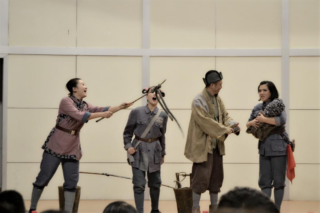 她们饱含深情的演绎将大家带回到那个烽火连天的抗日岁月,她们用自己的肢体和语言让观众们深深的感受到了大无畏的革命精神。在生与死、爱与恨的火焰和血海中唱出了一曲交织着生命、尊严和斗争的悲壮长歌。