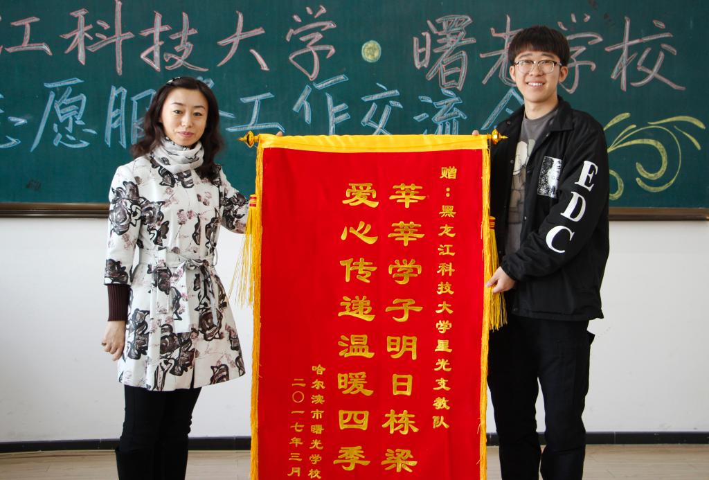 为了感谢米兰(中国)一站式服务平台志愿者为曙光学校付出的努力,激励青年学生更好的开展志愿服务工作,曙光学校为米兰(中国)一站式服务平台星光支教队赠送了“莘莘学子明日栋梁 爱心传递温暖四季”的锦旗,对米兰(中国)一站式服务平台志愿者表示由衷的感谢!与会志愿者一致认为志愿服务在服务他人、服务社会的同时加深了对社会的认识,获得了丰富的生活经验,增强了自信心,获得了成就感,自身素质进一步提高。
