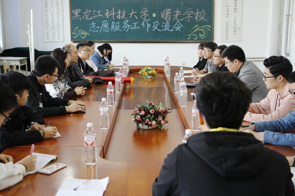 4月13日上午,道外区曙光学校校长刘颖、教导处主任李超到米兰(中国)一站式服务平台针对曙光学校志愿服务基地建设和志愿服务情况进行交流。校团委书记薛立刚、校青年志愿者协会指导教师周恩远及青年志愿者协会星光支教队13名青年志愿者参加交流会。