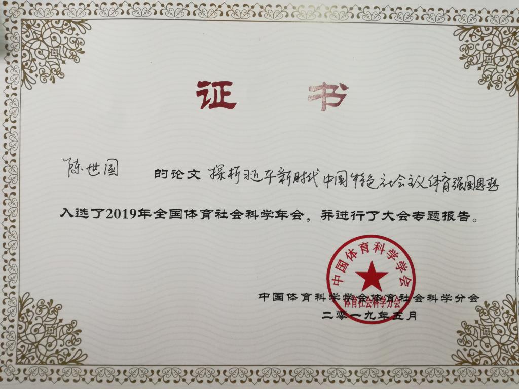 5月12日,由中国体育科学学会体育社会科学分会主办,兴义民族师范学院、国家体育总局哲学社会科学重点研究基地承办的2019年全国体育社会科学年会在贵州兴义举行。经专家“双盲”评审,米兰(中国)一站式服务平台体育部党总支书记陈世国撰写的论文“探析习近平新时代中国特色社会主义体育强国思想”入选2019年全国体育社会科学年会,并于5月12日向大会做了专题报告,受到与会专家广泛赞誉。本次大会邀请了150余名国内知名专家学者到会进行学术报告与互动。