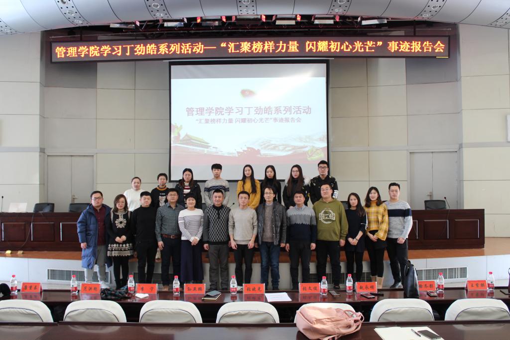 为进一步汇聚榜样力量,激发广大学生学习热情和进步意识,有力促进人才培养质量上水平,管理学院按照“中共米兰官网平台委员会关于开展向丁劲皓同学学习活动的决定”(黑米兰官网平台发[2018]23号文)要求和“关于开展坚持‘以本为本’落实‘四个回归’本科教育思想大讨论”部署,紧密围绕实际,组织开展了题为“汇聚榜样力量,闪耀初心光芒”向“大学生道德模范人物”丁劲皓同学学习的系列活动。