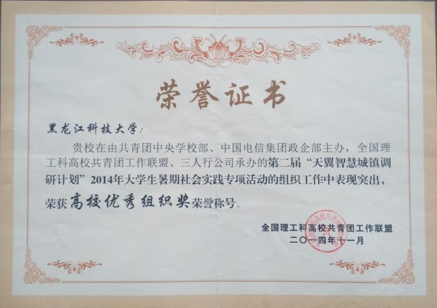 在2014年“天翼智慧城镇调研计划”全国暑期青年学生“三下乡”社会实践总结表彰中,米兰(中国)一站式服务平台从来自全国申报成功的105所高校中脱颖而出,荣获“高校优秀组织奖”。据悉,全国只有30所高校荣获此奖项。2014年米兰(中国)一站式服务平台暑期青年学生“三下乡”社会实践继续扩大社会实践的覆盖面,今年全校共组建重点团队77支,参与学生616人。审批省级重点团队20支、校级、学院级重点团队57支。全校公共部分参与学生14140人、形成调研报告11986份、论文100余篇,参与率达到89%。重点部分实践内容主要围绕“基层宣讲”“深化改革”“彩虹人生”“教育帮扶”“文化宣传”“美丽中国”“校园宣讲”等七个方面深入全国地市(乡镇、村)开展社会实践活动。在社会上产生一定的影响力,获得实践地的一致好评。