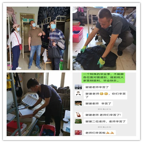 因疫情原因,绝大多数毕业生不愿返校领取行李。学院党委做出由专人为毕业生集中整理邮寄行李的决定。为保证行李整理邮寄工作科学高效精准,学院制定了详细的工作流程和规范,同时为检验工作流程可行性,查找工作漏洞和短板,6月6日,学院党委书记薛立刚和副书记贺龙军带领全体辅导员深入学生寝室,开展行李整理试点工作,针对实地勘验暴露出的问题,对工作流程和规范进行了调整和优化。