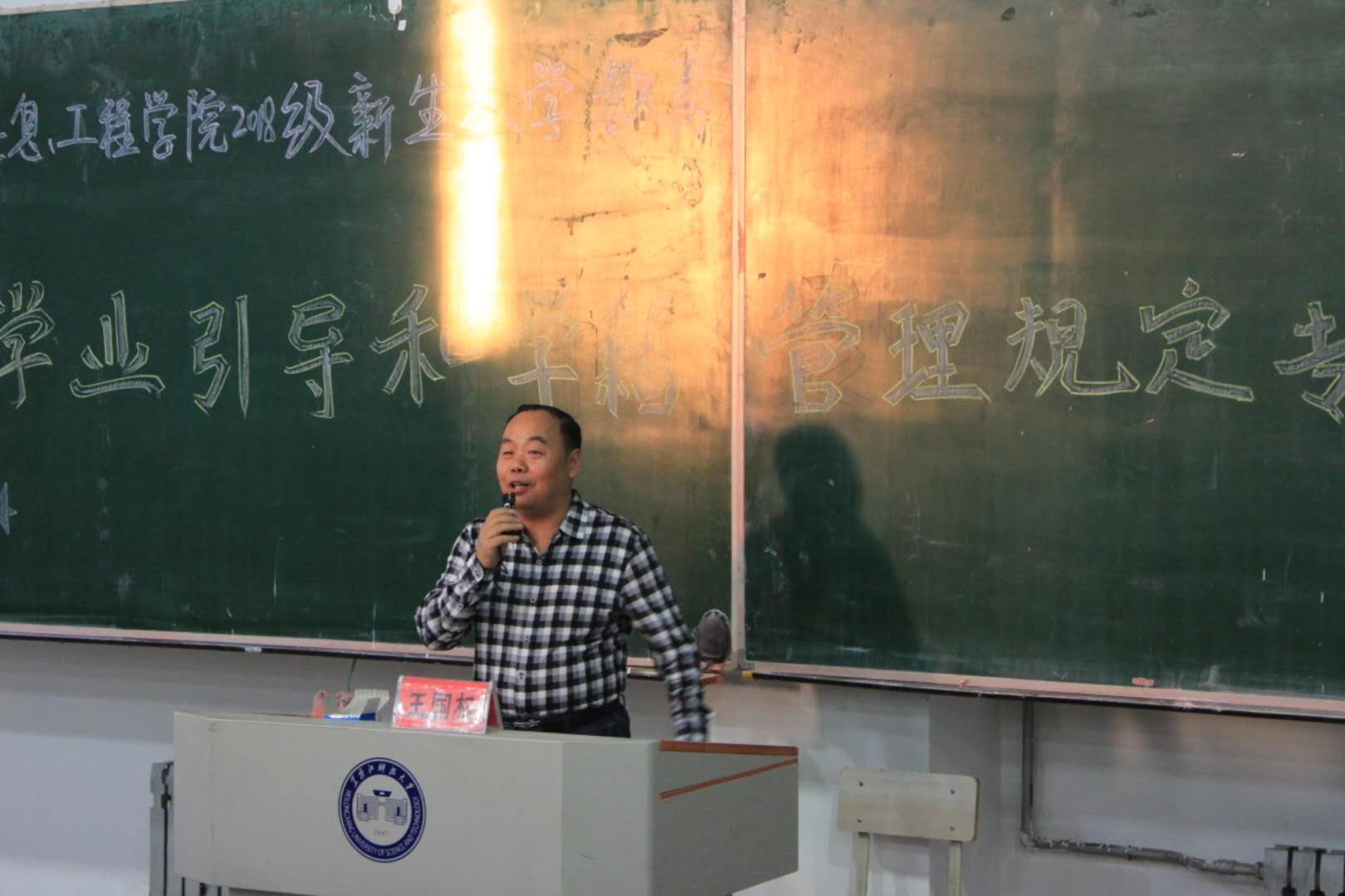 9月16日下午,副院长王国权在主楼EN0401开展学业引导和学籍管理规定专题讲座。讲座从课程简介、学习方法与指导及学籍处理有关管理规定三个方面向同学们进行了讲解。他希望同学们能够了解学院的培养方案,认真对待大学四年的学习生活。