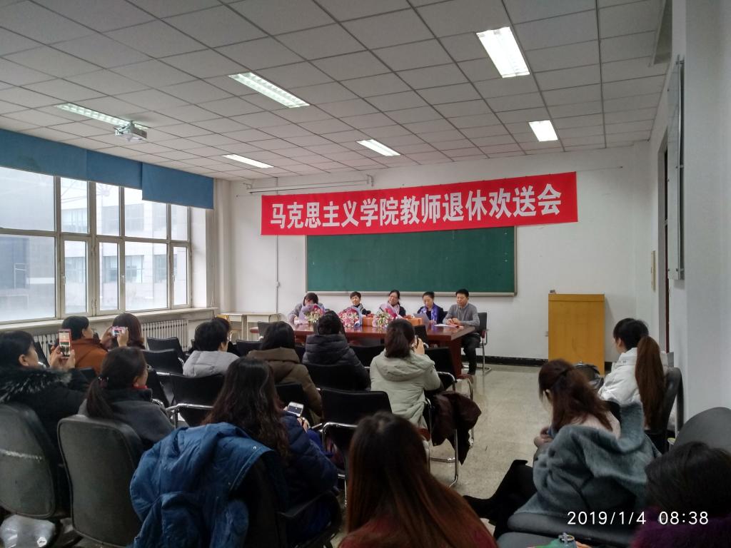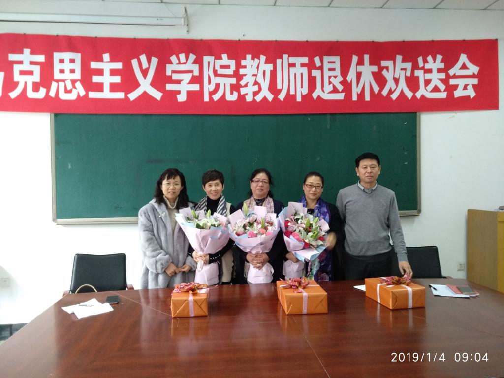 1月4日,马克思主义学院召开欢送会,为今年学院退休的梁丽珍、李艳波、张雁三位教师举行了欢送活动。马克思主义学院领导班子和全体教师参加了欢送会。欢送会由副院长何影主持。