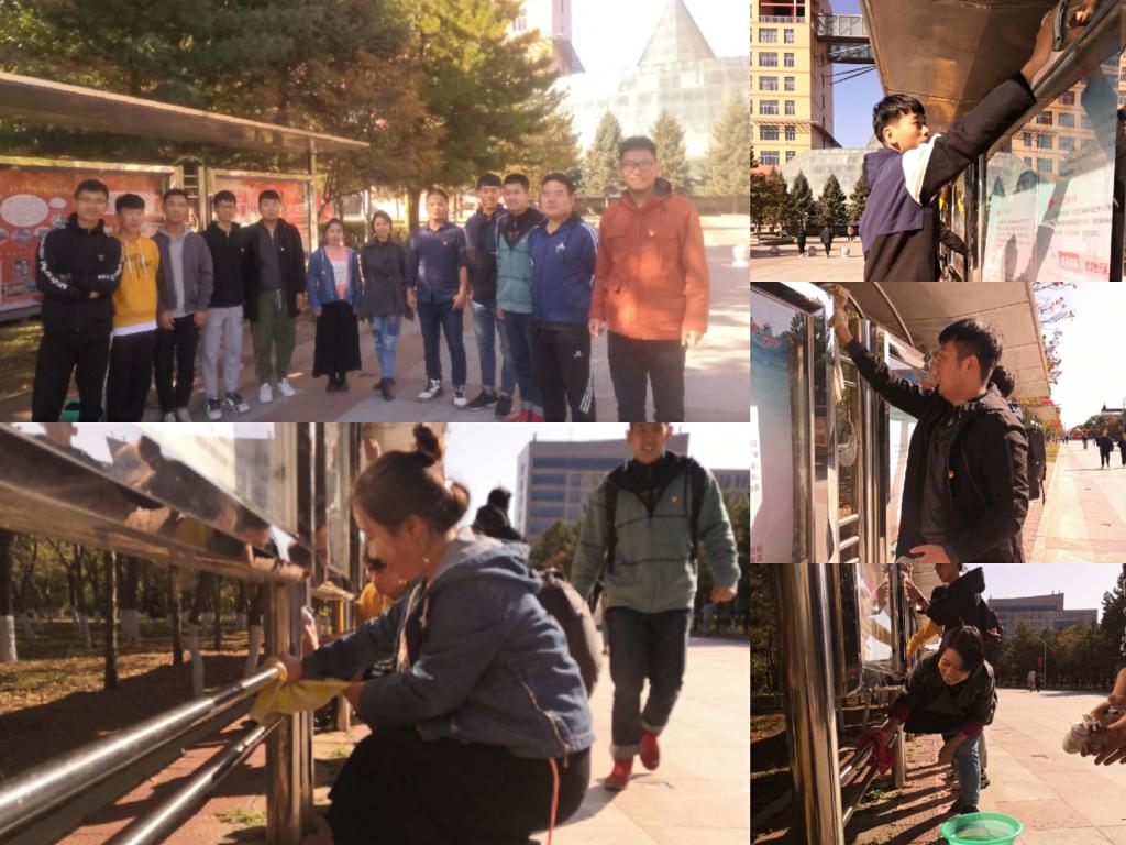 10月11日中午,学生第一党支部全体党员将学校仪江路以南的部位进行了全面的卫生清理。同一时间,学生第二党支部将筹建大道两边的宣传栏进行了擦拭。学生第四党支部对图书馆自习区进行了卫生清扫。10月12日,学生第五党支部对文化广场及周边的宿舍区进行了垃圾清理。10月14日下午,学生第三党支部对第三、八学生公寓的卫生间、走廊及楼梯平台进行了清理打扫。