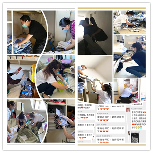 外国语学院为全力做好2020届毕业生的行李邮寄工作,院领导和老师们以自己的方式,不辞辛劳,让毕业生感受到了更浓的师爱、师情、师怀,让这份“云”打包载着贴心暖心的祝福和对毕业生美好未来的祝愿。外国语学院辅导员耿成晶为全身心投入到2020届毕业生复学工作当中,把未满周岁的孩子送回到巴彦的娘家;教务科负责人马芳晴忍着孕吐的强烈反应仍坚持每日来校,进行服务毕业生的工作中;办公室主任张学金,母亲在大庆突发疾病,她仅是回到大庆看望了一眼,就立刻驱车回校参加到为毕业生的行李打包当中;学工办主任李一鸣以一己之力,多次为学生邮寄吉他、相机、电脑等珍贵易碎品,为了保证吉他邮寄完好,找遍江北江南多家邮寄公司;外国语学院处级领导班子成员,平均年龄53岁,但仍旧全员深入到宿舍当中,亲自与学生视频连线、装箱打包,一句句体贴的话语、一幕幕感人的画面定格在服务2020届毕业生的每一个瞬间。