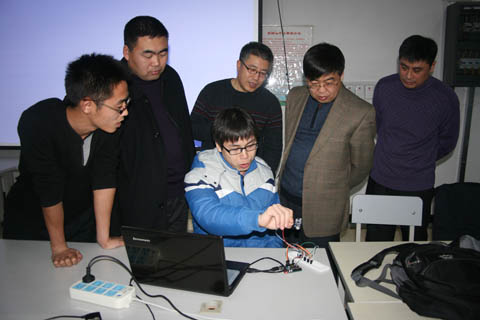 会上,由物联网工程专业2012、2013级学生组成的6个素质教育研究团队展示了“网络指纹锁”、“网络温湿度监控仪”、“无线监控小车”、“语音控制台灯”等作品。各团队首先从作品实现功能、设计方案、硬件电路、软件流程、作品展望等方面对作品的设计和制作进行了阐述。随后,团队成员对每件作品进行了实际演示操作,运用手机进行远程遥控“网络指纹锁”,实现了无线开锁的功能,该作品还可以用于教室指纹点名;使用WIFI等无线传感技术实现了“语音控制台灯”的智能控制功能,该作品还可以自由使用语音实现家用电器的智能控制;“无线监控小车”通过摄像头、WIFI、网络平台实现网络实时监控的功能,可以用于危险、负环境的监测。这些作品充分展现出学生对物联网传感层的数据采集、无线传感网、智能控制、网络监控等技术的运用,实现了学生对所学的物联网工程专业基础理论知识的应用,并将其转化成具有较强实用价值的实物作品。