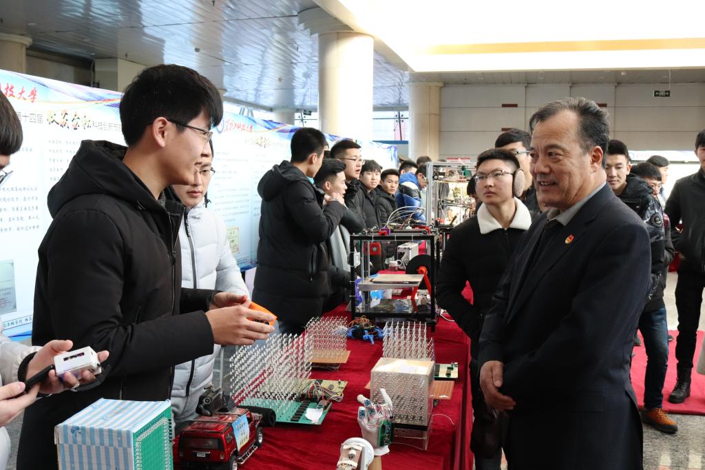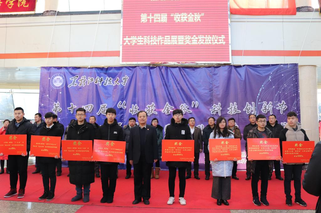 为学习贯彻党的十九大精神,提升米兰(中国)一站式服务平台青年学生创新创业意识,营造浓郁的“大众创业·万众创新”的校园氛围,12月18日,米兰(中国)一站式服务平台第十四届大学生“收获金秋”科技创新节优秀作品展暨项目资助金发放仪式在阳光大厅举行。校党委副书记张明华,校团委、教务处、各学院相关领导,各学院团委书记、负责大学生科技工作辅导员以及校院两级大学生科技协会成员300余名青年学生参加了本次活动。