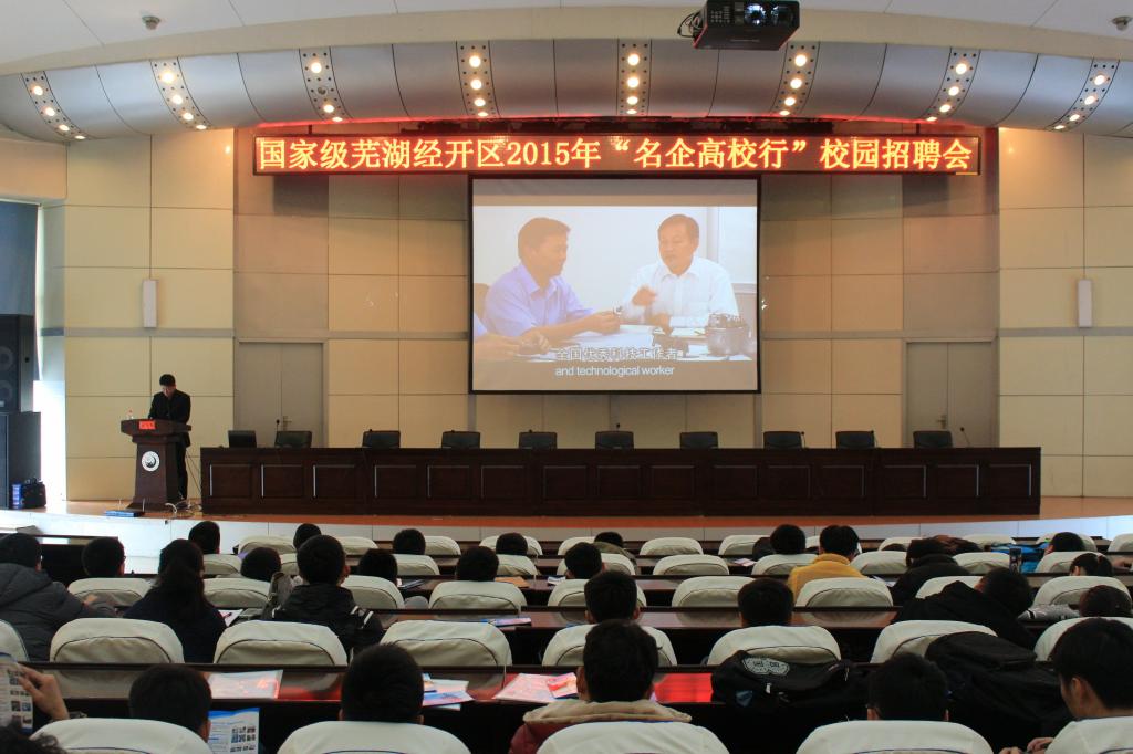 会上,招就处副处长高志刚介绍米兰(中国)一站式服务平台毕业生生源及就业情况;电气学院、电信学院、机械学院、管理学院、研究生学院分别介绍了学科专业、毕业生情况及就业去向;芜湖经济技术开发区管委会副主任纪良柱、芜湖经济技术开发区人力资源和社会保障局副局长张定兵、人力资源开发中心主任陈广磊分别介绍了芜湖经开区的总体情况、人才需求情况以及人才引进政策等;双方又针对校区(企)合作进行了深入的探讨。