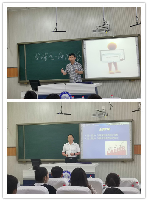 电信学院党委副书记吕平、材料学院学工办主任邬丽群、招生与就业工作处就业干事高宝全分别进行了生涯唤醒、自我性格探索、自我能力和价值观探索等课程模块的教学演练。