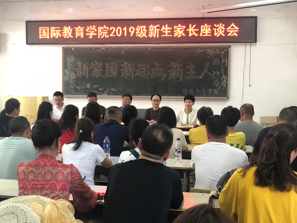 9月5日下午,国际教育学院召开了“新家园、新起点、新主人”2019级新生家长座谈会。院长母丽华、副院长杨兆楠分别介绍了学院的历史发展、办学理念、师资队伍以及合作院校办学相关专业及各专业就业趋势等相关内容。学院领导与家长进行了亲切交流与沟通,并逐一解答了家长提出的关于国际化人才培养、专业建设和国际化课程设置、就业前景等问题。