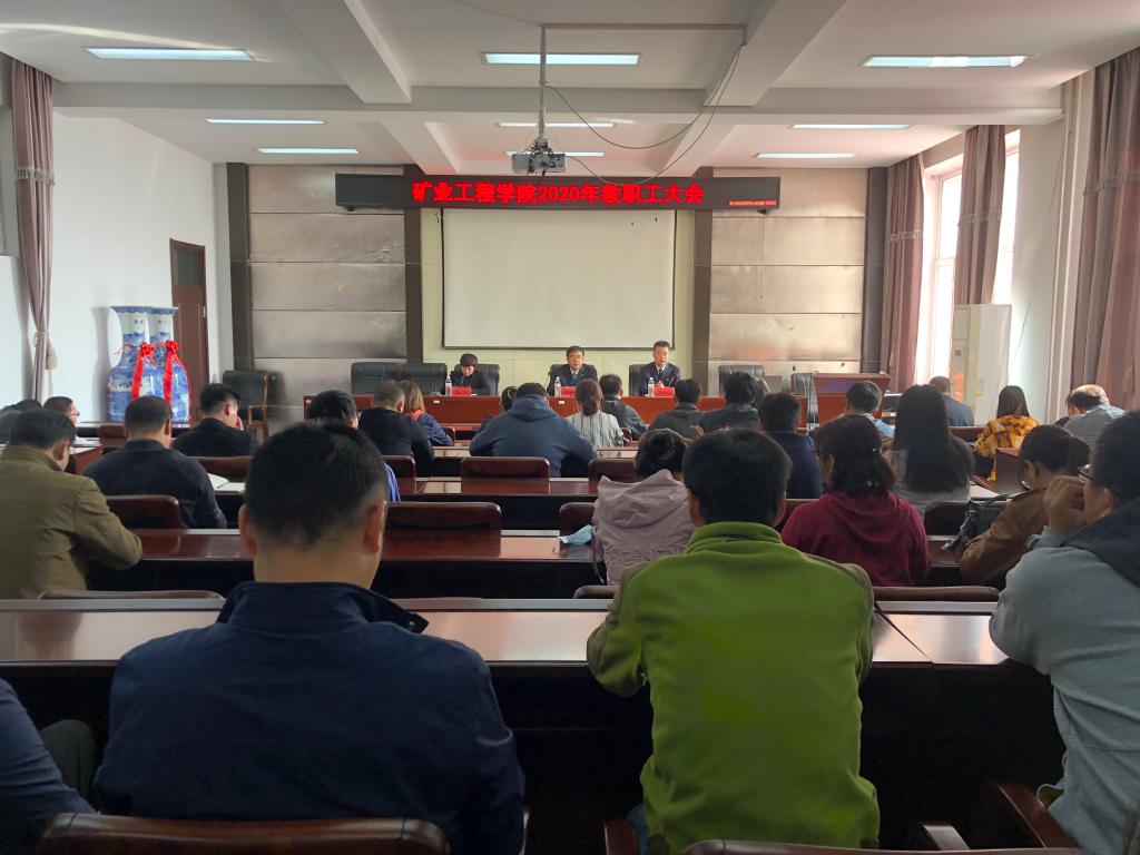 会上,听取并审议通过了院长肖福坤所作的题为《凝心聚力,攻坚克难,在坚持大矿业办学特色中开创学院发展新局面》的行政工作报告。他指出,过去的一年,学院各项事业取得长足发展,以采矿工程获得国家一流专业、矿物加工工程通过专业认证为标志,专业建设水平明显提高;以到位3108万元经费为标志,科研工作有了新突破;以应届毕业生就业率达94%为标志,人才培养工作扎实有效;以完成首批“龙煤学院”学生入学为标志,校企合作谱写了新篇章;以矿业馆逐步完善落实为标志,办学条件日益改善,学院综合实力逐步攀升。结合以往工作经验,他对学院2020年的工作进行了周密部署,他强调,矿业工程学院将坚持“大矿业”的发展理念,进一步坚持“以本为本”,落实“四个回归”,以学科专业建设为龙头,形成多学科交叉渗透、相互支撑的学科专业体系;以师资队伍建设为根本,增强自主创新能力;以教学工作为中心,产学研相结合,全面提升人才培养质量;全力在“矿业特色”向 “矿业实力”转变上下功夫;全面加强“双论证”工作力度。